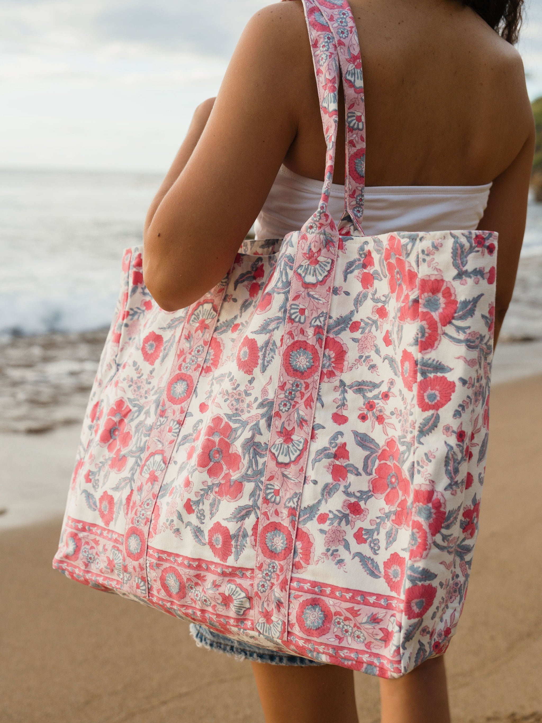 Hand block printed by artisans in Jaipur, India on durable cotton canvas, each tote is made in small batches at a SEDEX certified fair trade factory. Thoughtfully crafted with care for people and planet, this is an easy essential you will reach for again and again.