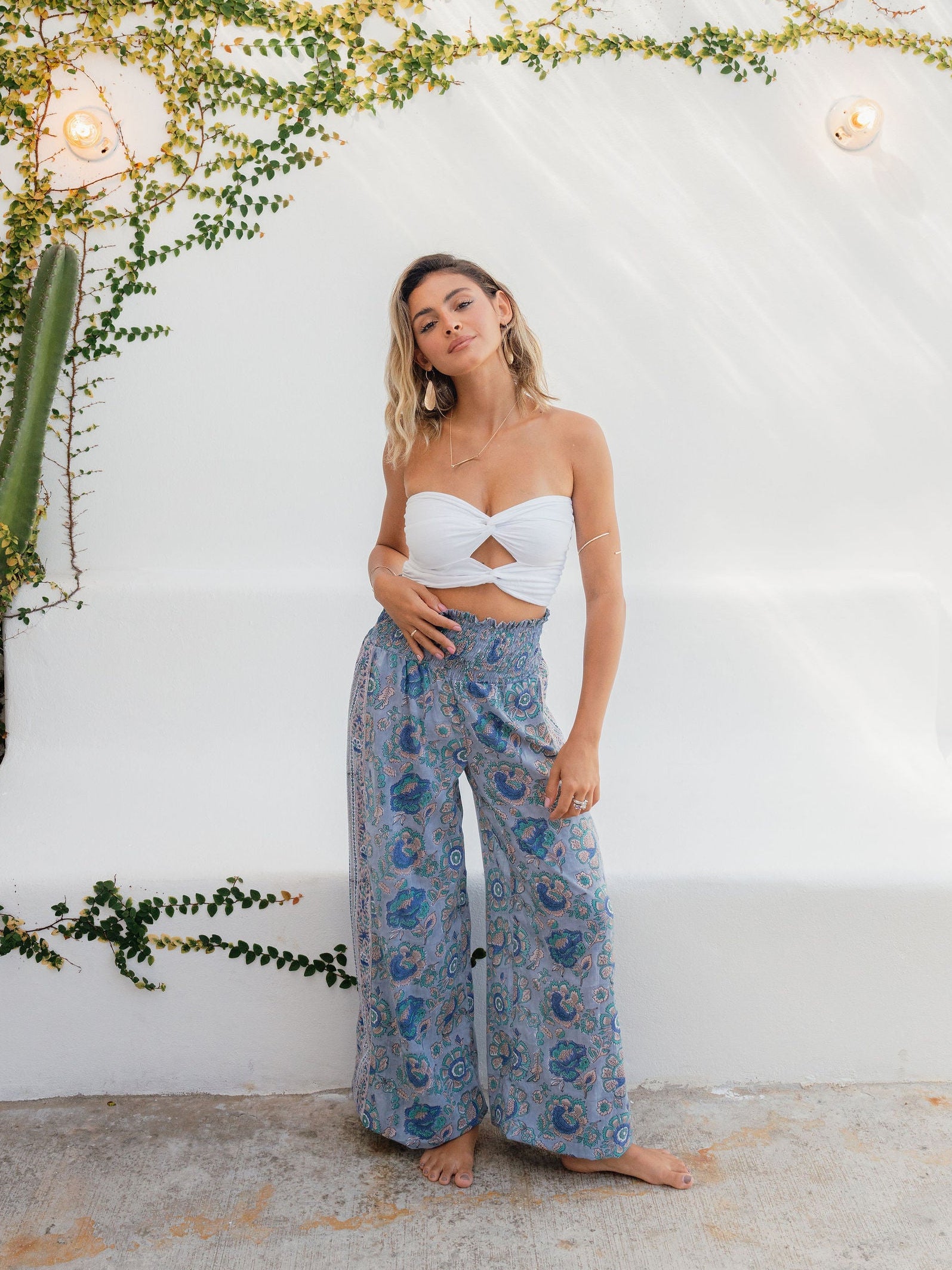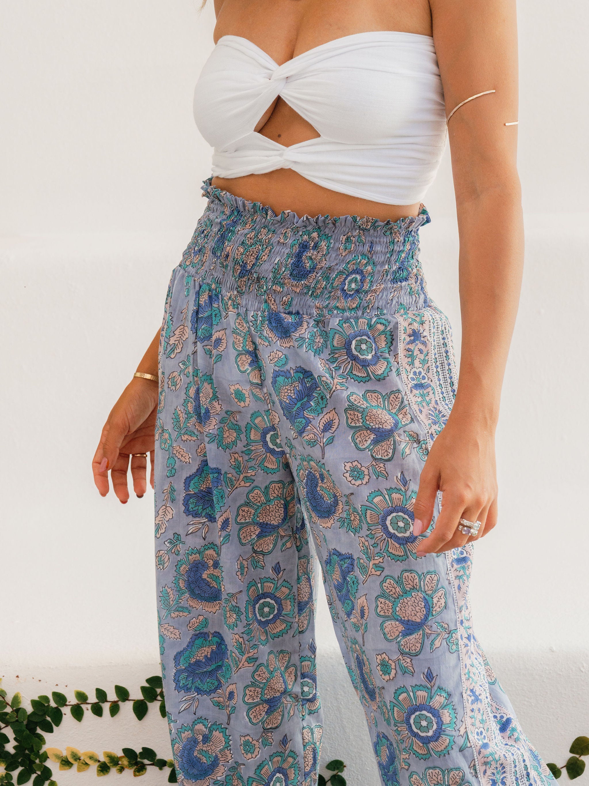 Float through your day in these dreamy, wide-leg pants made from airy-light 100% cotton voile. Hand block-printed by skilled artisans in Jaipur India, each pair is a wearable piece of art. The high smocked waistband hugs comfortably at the waist, while the flowy silhouette adds a relaxed, free-spirited vibe. Perfect for beach strolls, market mornings, or just embracing that barefoot-bohemian feeling—wherever you are.