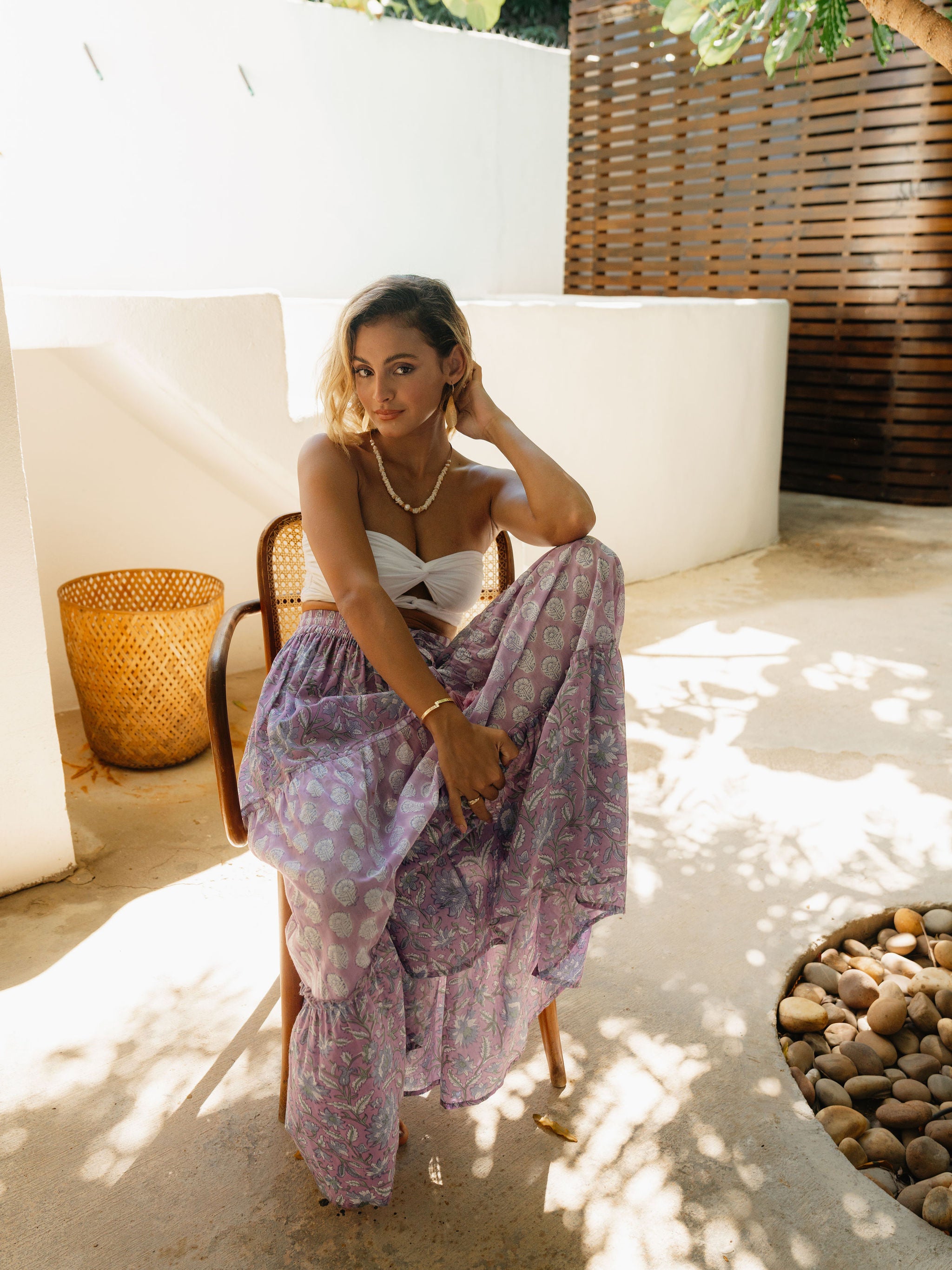 Softly tiered and easy to wear, this maxi skirt is crafted from airy 100% cotton voile and hand block printed by our skilled team of artisans in Jaipur, India. Finished with an elastic waist, tasseled tie, and free-spirited silhouette. A soulful, handcrafted piece you'll wear on repeat.